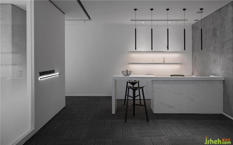 人性化的多功能前廳區(qū)域,即是前臺接待又是吧臺,還能作為設(shè)計師們喝喝咖啡,侃侃大山的休閑之所龍巖辦公室設(shè)計。