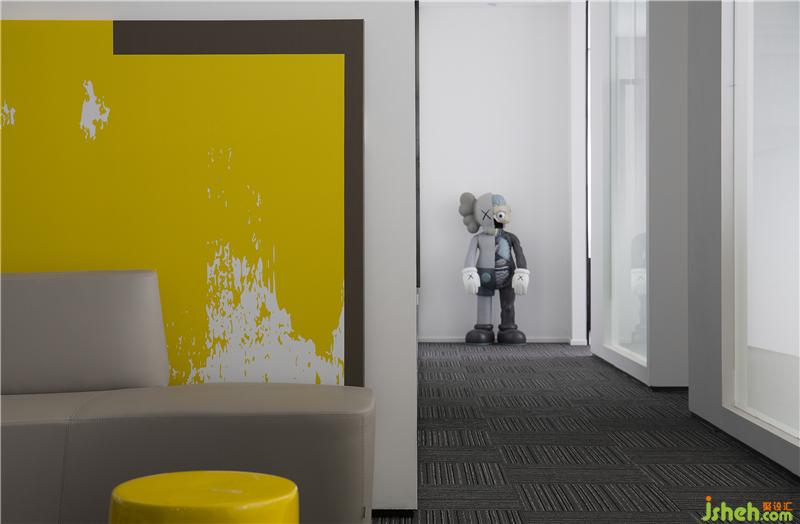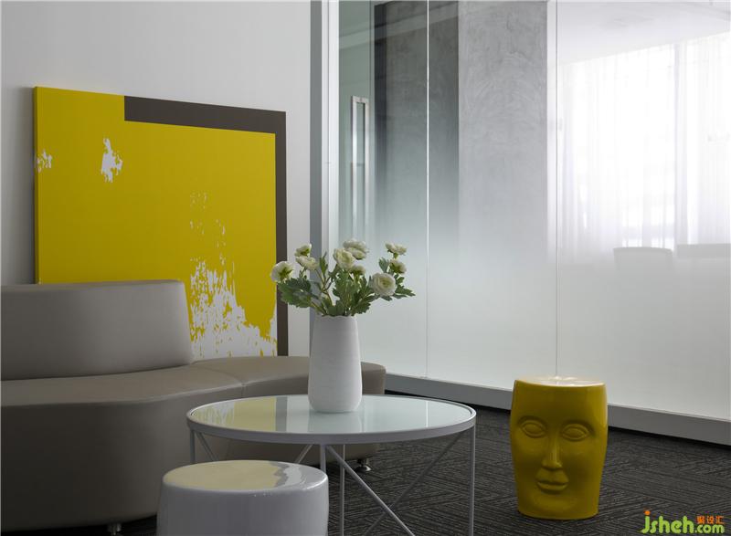 前廳接待區(qū)作為來訪客人短暫逗留之地,與吧臺對應(yīng),兩個功能區(qū)域互通,方便接待與交流。大幅黃色落地現(xiàn)代畫,包豪斯風(fēng)格十足,給整個質(zhì)感現(xiàn)代的空間注入溫度,圓弧邊沙發(fā)與圓形茶幾打破整個空間的線條感,方中有圓,充滿了圓潤的人本主義思想。有趣的人臉小品凳,都讓空間活潑有趣了起來龍巖辦公室設(shè)計。
