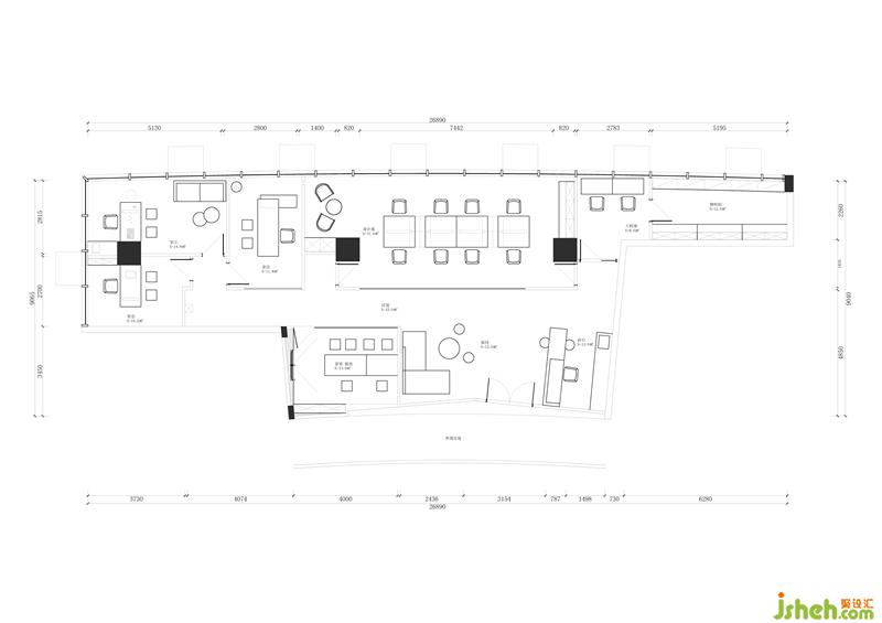 空間平面規(guī)劃以區(qū)域布局分隔,在滿足功能需求的前提下利用材料特性的變化,拓展了空間的縱深面積龍巖辦公室設(shè)計。