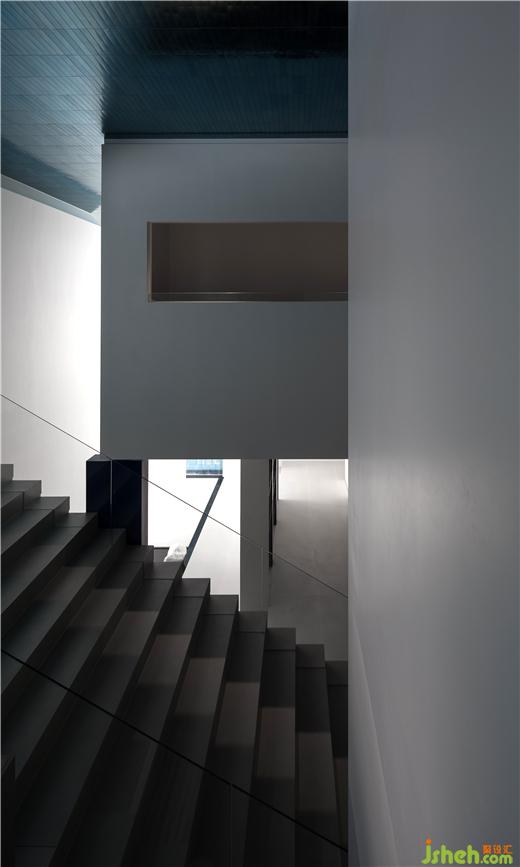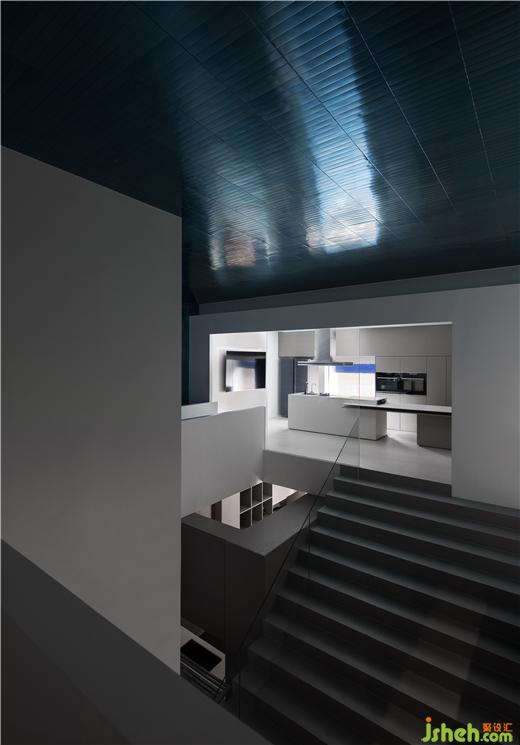 穿過樓梯,來到靜謐的展示區(qū)域徐徐向外闡述著場景化體驗的宗旨,展廳設(shè)計空間設(shè)色以黑與白的拼接為主要形式,在有序與不規(guī)則的疊加中,為顧客靜謐優(yōu)雅的參觀氛圍,啟發(fā)客群對展品的美好感受。
