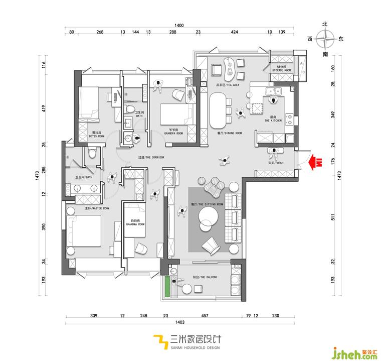 ③三米家居設計把主臥分割成兩個房間,增加獨立的奶奶房。
