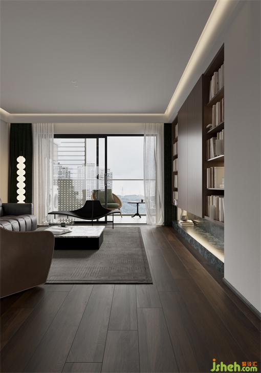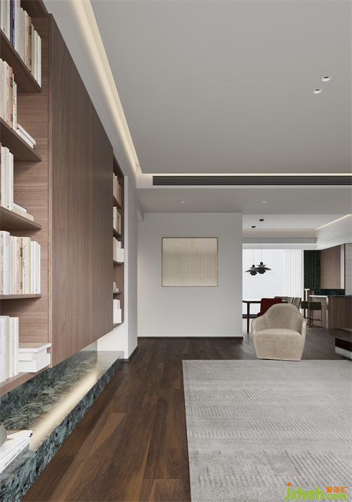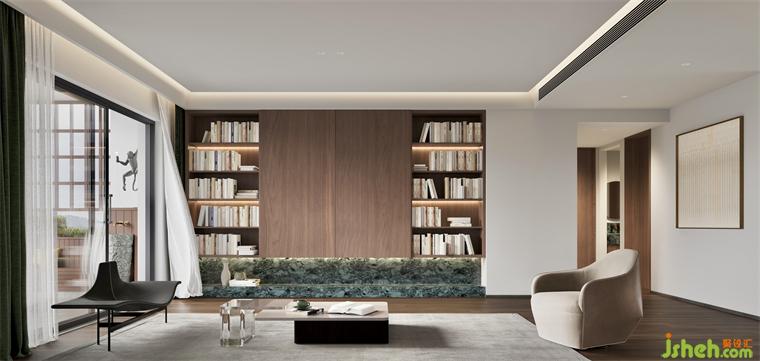 客廳電視柜設計成點電動推門,要看電視時只需要輕輕一按遙控,推門就會從兩邊自動打開,平時在家,三米家居設計把電視藏起來,秒變家庭“圖書館”。