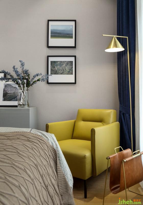 淺色床品與金屬燈具的搭配,芥末黃與寶石藍(lán)的交織,打造出空間優(yōu)雅的氣質(zhì)。墻上的風(fēng)景畫(huà)與窗外的美景遙相呼應(yīng),坐在這里喝杯咖啡,翻翻雜志,愜意享受生活的閑適。
