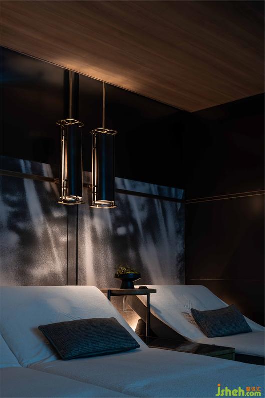 室內(nèi)幾乎無硬光源直接裸露在外,或呈燈帶斂去光芒最銳利部分,或藏散于燈罩之中,或漫散于屋脊、墻面、天花,這暗合了東方古典文化中的“隱秀”。