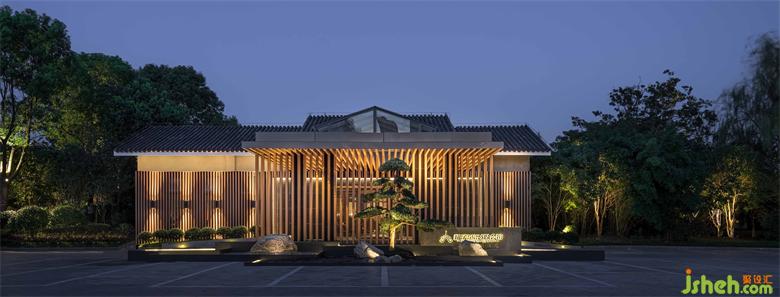 入口處外立面的光影疏密有致,點、線、面光源在這里互相輝映,將樓閣輪廓層次清晰又細(xì)致地表達(dá)出來。木柵上的燈光像被人從中間處捆起來又細(xì)細(xì)地分散開來。