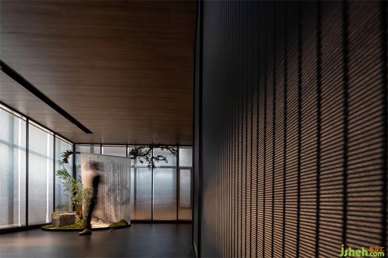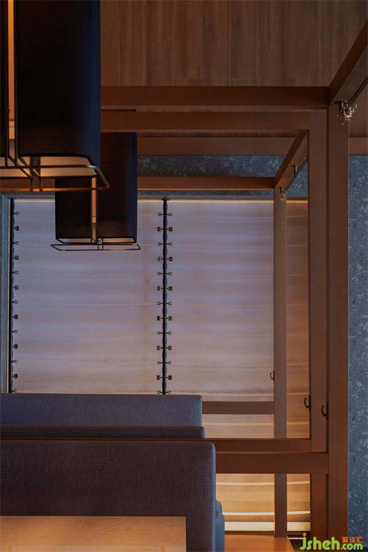 金屬簾、原木、原石、足夠的室內(nèi)留白和浮光掠影,讓空間生出類似侘寂之美,但此間疏朗曠達(dá),絕無殘落之意。人行其中如置身煙波河流,雖浸霧靄朦朦,猶沐燈火融融,心存彼岸,無有厭離,清歡常伴。