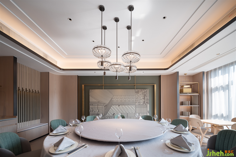 設(shè)計師將傳統(tǒng)揚(yáng)州元素與國際化表達(dá)方式相融,突破傳統(tǒng)淮揚(yáng)菜空間調(diào)性的形式美感,展現(xiàn)了“揚(yáng)州人心中的國際,外來客心中的揚(yáng)州”。