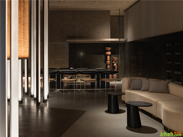 堆疊的木雕壘起「溪石」,「月映」被一盞孤燈點亮。和子SPA會館設(shè)計師重新編譯傳統(tǒng)人文元素,將其融入現(xiàn)代審美骨架及認(rèn)知秩序中。雖不真見山林溪石,卻恍若曲水流觴,碳爐烹茶 。