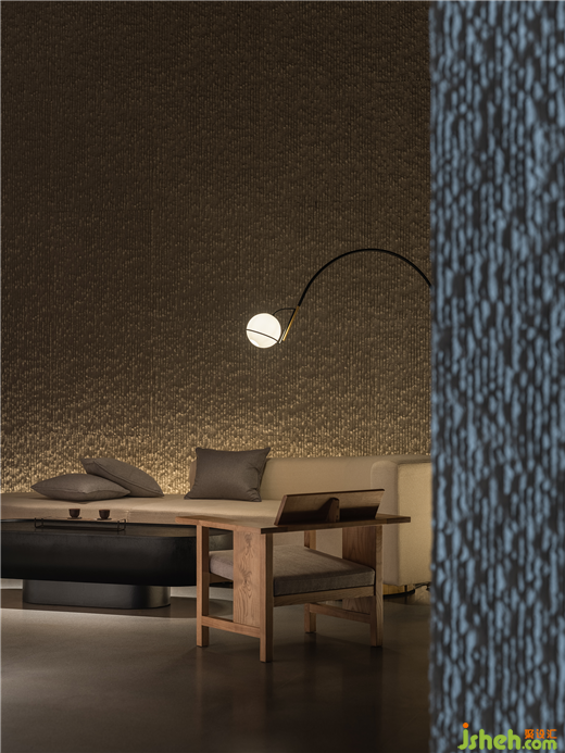 北宋書畫家米芾曾以「深暗如暮夜晦明」評價《溪山行旅圖》。范日橋亦深諳其妙,光線既不消沉,又不過于礙眼。沉暗色伏幽雅之境,浮瑩光點心緒之明。古意與新境同頻,人們在此延伸無限遐想。