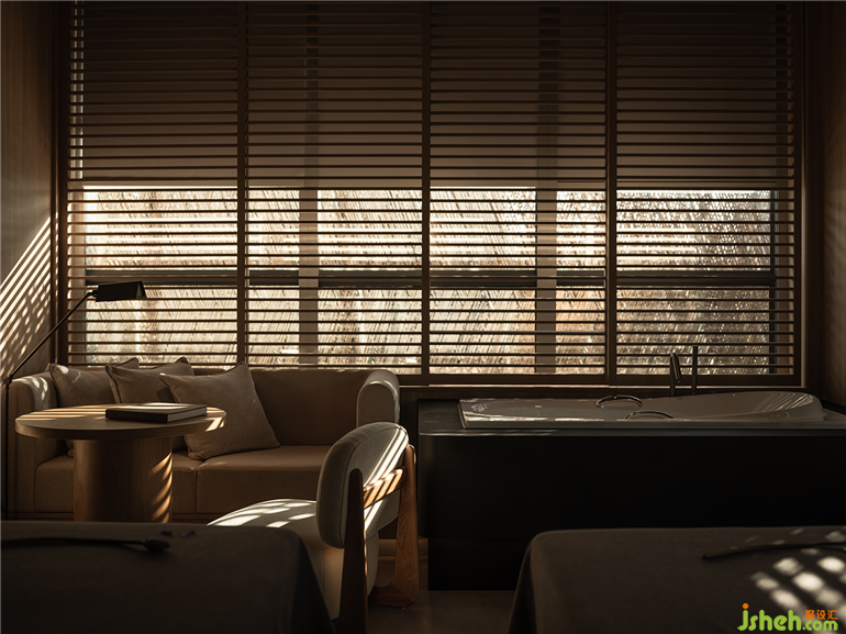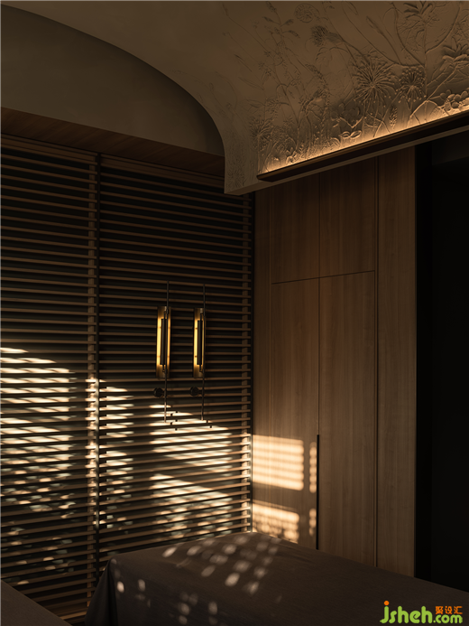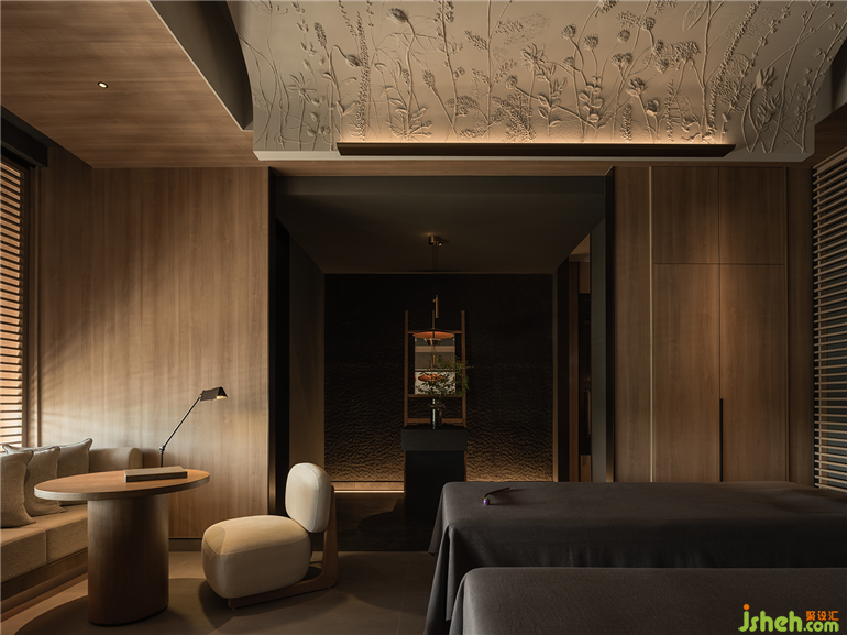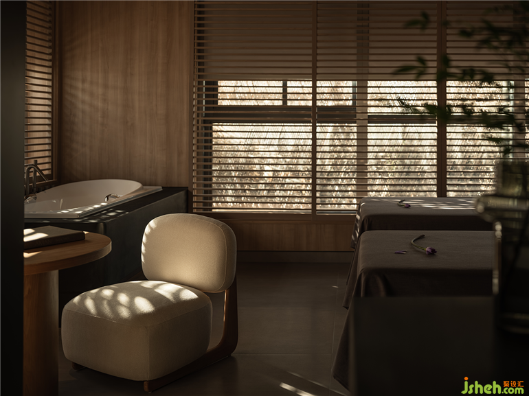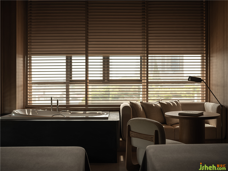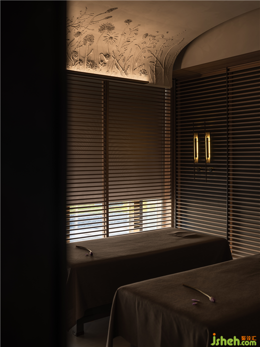 陽光掠過格柵,織就光陰,滌蕩塵囂。和子SPA會館設(shè)計師摒棄繁飾,用最質(zhì)樸的光影,塑一室靜謐,享身心輕松,憐時光流逝。