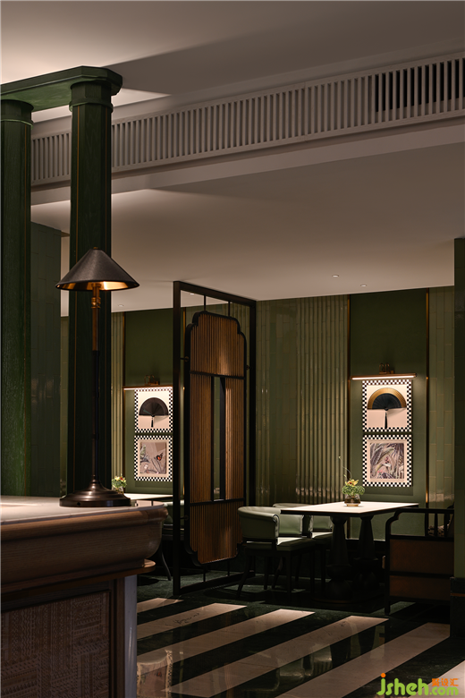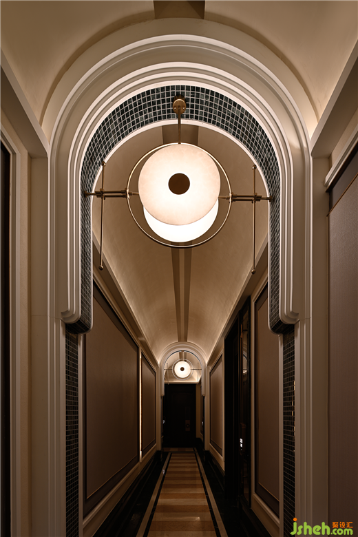 弧形拱門賦予了通向包間的道路超強的節(jié)奏感,還帶有濃郁的古典風(fēng)情??臻g像舞臺一樣的場景,但從不平庸,但卻舒適而令人放心。