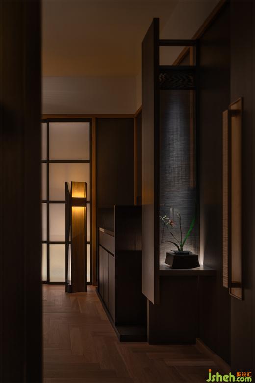 被清寂的墻壁和自然的木紋包圍,將燈光調(diào)至微暗,將空間與花月相結(jié)合,將一切事物詩化,一切也顯得朦朧隱約才好,在陰翳中閃閃發(fā)著光的蘭花,其中蘊含著讓人心情沉靜的溫暖。
