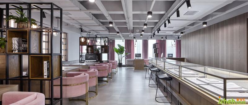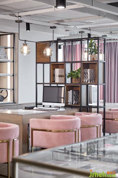 輕奢、獨(dú)立、優(yōu)雅、向上。品牌理念更像是在形容典型的現(xiàn)代都市女性。因此,設(shè)計(jì)公司在本案色彩選用了大面積的灰與局部的粉,在內(nèi)飾中灰色占主導(dǎo)地位,顯得神秘而優(yōu)雅,優(yōu)雅中又透著些許知性。