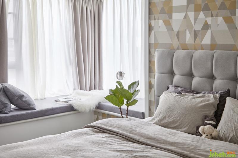 需要一間能與外部天氣抗衡的慵懶、柔軟、舒適的臥室,菱格墻紙與素色床用,個性精簡。設(shè)計公司把靠窗的部分作為了明亮的閱讀區(qū),陽光明媚的周末,大可以在這兒賴上一天。