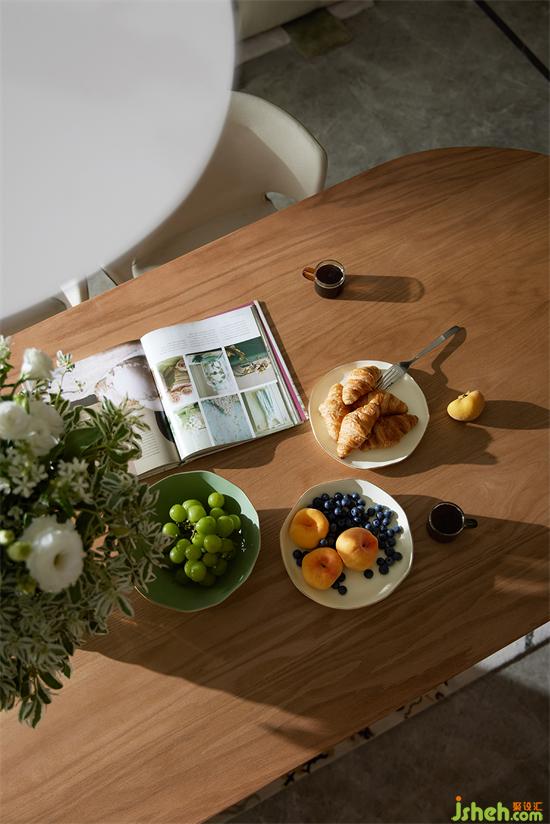擁有著圓潤弧線的餐桌,家裝設(shè)計與富于造型感的圓形吊燈,均為空間增添了幾分柔雅。準(zhǔn)備些精致小巧的瓜果茶點(diǎn),取一本喜歡的雜志,就能度過一整個愜意的下午茶時光。