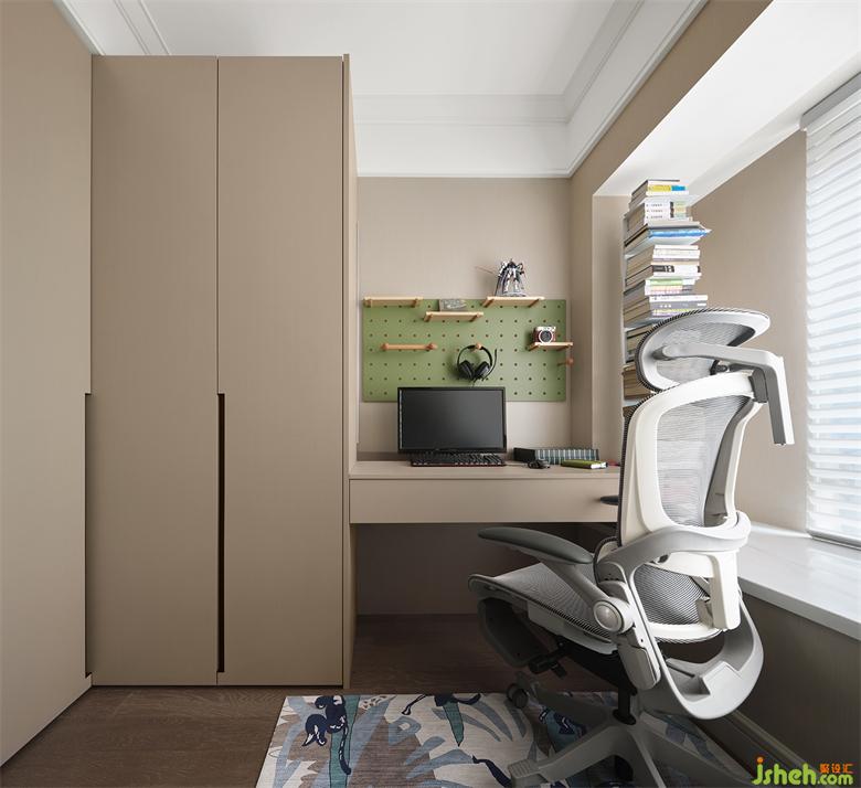 書房不僅可以滿足平日工作閱讀的需求,更保證了充足的柜體收納,簡凈有序之余,家裝設(shè)計(jì)讓空間得到了最大化的利用。