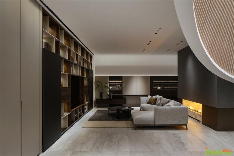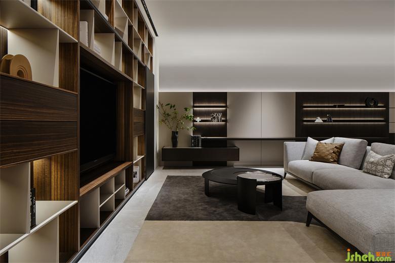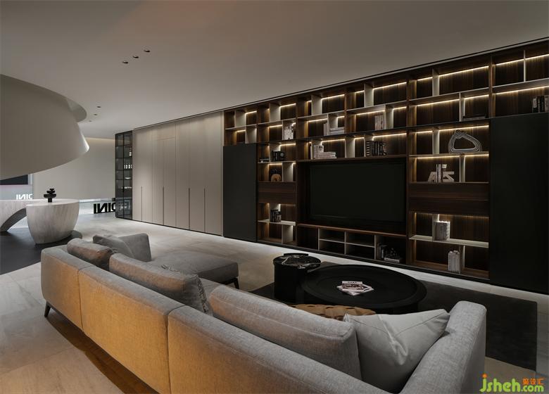 沉穩(wěn)的色彩搭配別具質(zhì)感的板材,展廳設(shè)計(jì)將生活的溫馨勾勒得恰到好處。靈活可變的推拉門設(shè)計(jì),可以將電視機(jī)做隱藏處理,使空間收納更加整潔有序。