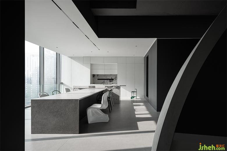 沙龍區(qū)的硬朗直線與公共辦公區(qū)域的優(yōu)雅弧線相結(jié)合,剛?cè)嵯酀?jì),展現(xiàn)出幾何的藝術(shù)美感,辦公室設(shè)計(jì)使空間富于變化,實(shí)現(xiàn)了一種微妙的平衡。