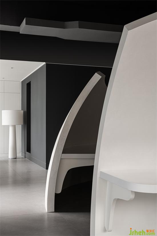 弧線在空間中的藝術(shù)組合,靈動優(yōu)雅,除了承載公司文化之外,還豐富了整個空間的動線層次。辦公室設(shè)計創(chuàng)始人與運營負責(zé)人在各自辦公室中,都可以與公共辦公區(qū)里各自主管的部門形成對望,視線錯落有效的遮擋與開放,形成一種內(nèi)外相聯(lián)又彼此獨立的空間格局。