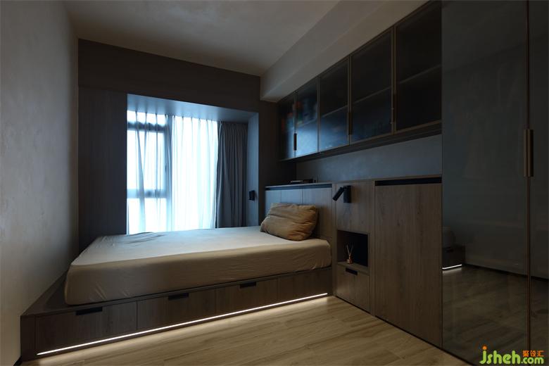 主臥柜體收納充裕,榻榻米床的下方也有大量收納空間,便于空間保持足夠的整潔。家裝設(shè)計(jì)安靜的氛圍亦為休憩提供了良好的環(huán)境。