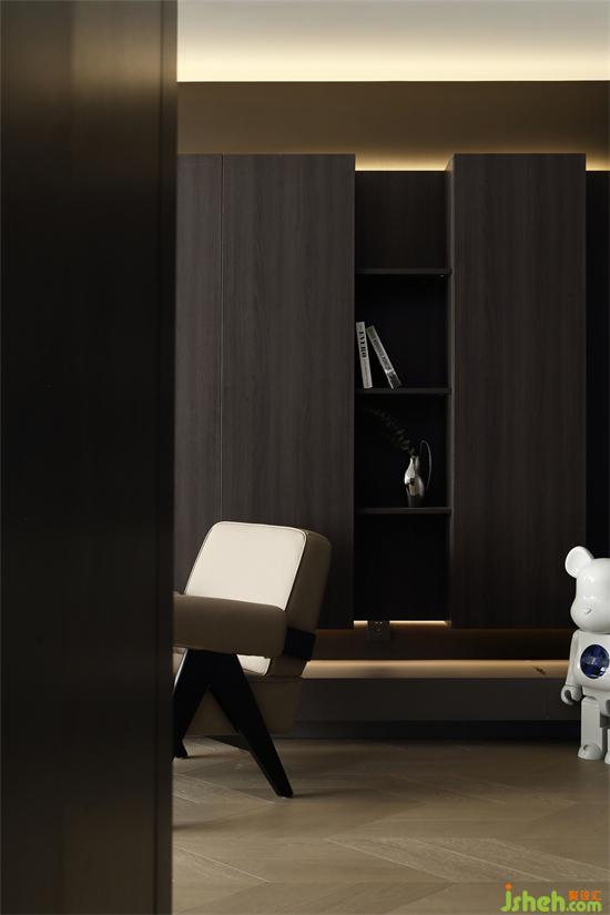 會(huì)客廳亦延續(xù)空間的黑灰主調(diào),黑色背景墻渲染出莊重與優(yōu)雅的氣氛,神秘炫酷,家裝設(shè)計(jì)讓人置身其中自然而然地沉下心來,細(xì)細(xì)品味生活之美。