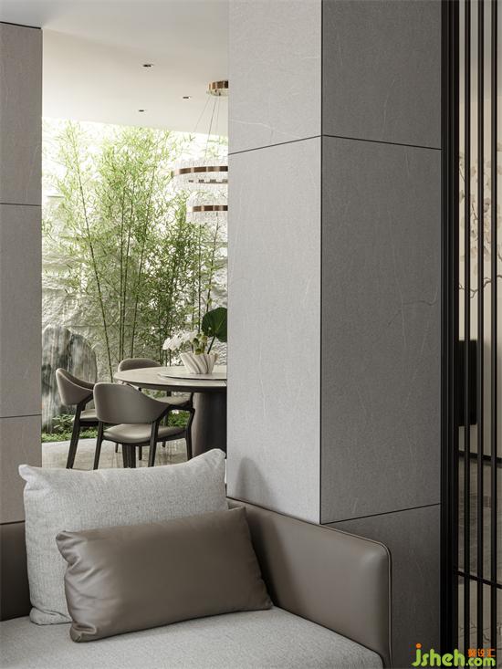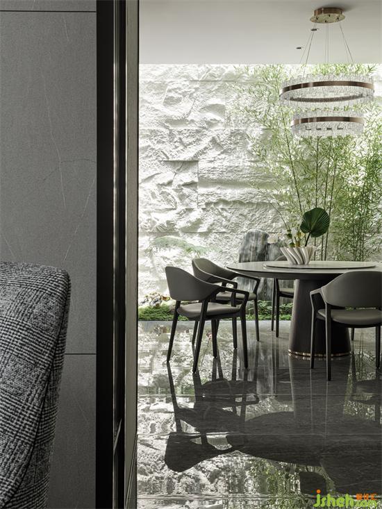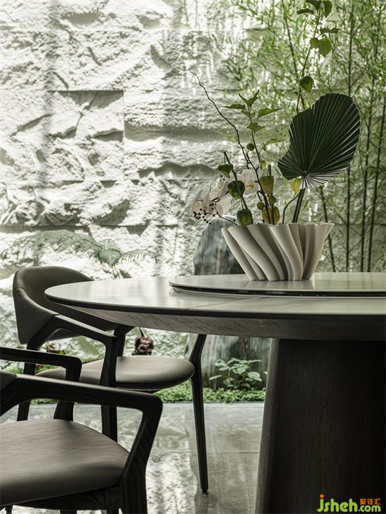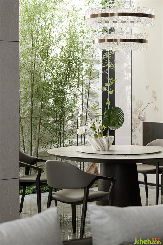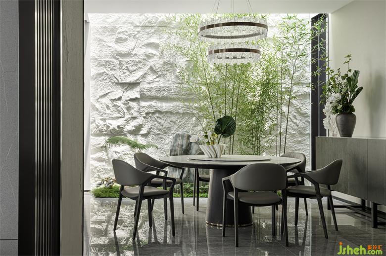 客餐廳通透的動(dòng)線讓家人間的溝通交流更加方便,塑造著彼此間更為深刻的情感鏈接。別墅設(shè)計(jì)綠意裝飾的餐廳,在家中的很多角度進(jìn)行觀看都能達(dá)到一種園林造景的意趣。
