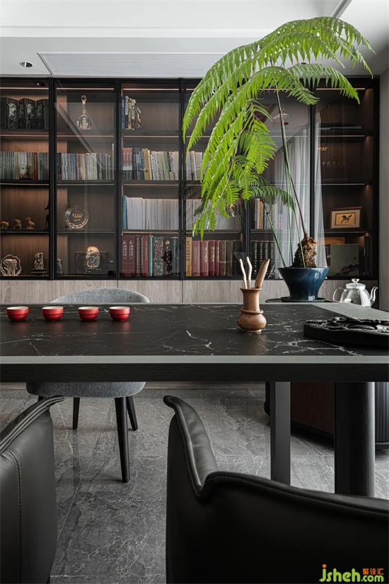 位于餐廳背后的開放式茶室,滿足了女業(yè)主喝茶的愛好,窗外臨有風景如畫的花園,倚窗品茗,靜享清香,美景相伴。