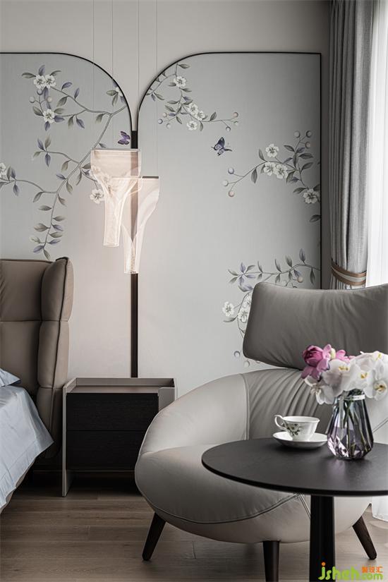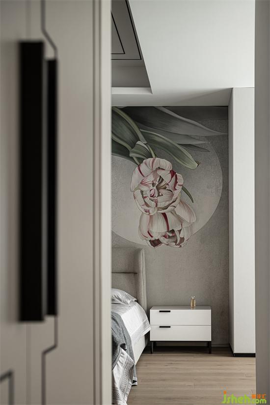 女兒套房別具溫婉氣息,以優(yōu)雅淡然的色調(diào)作為基底,柔靜舒適。別墅設(shè)計(jì)含苞欲放的花朵圖案背景墻平添幾分典雅意蘊(yùn)。