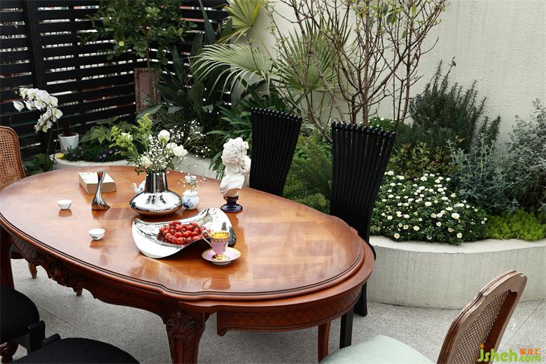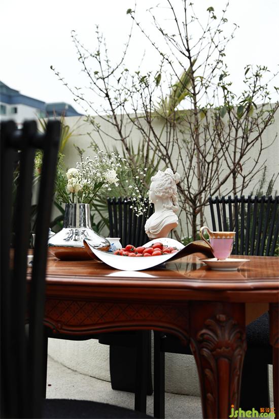 將原有的花池部分改為家政區(qū)和休閑區(qū)相結(jié)合的功能區(qū)域,把下午茶概念融入休閑區(qū)中。