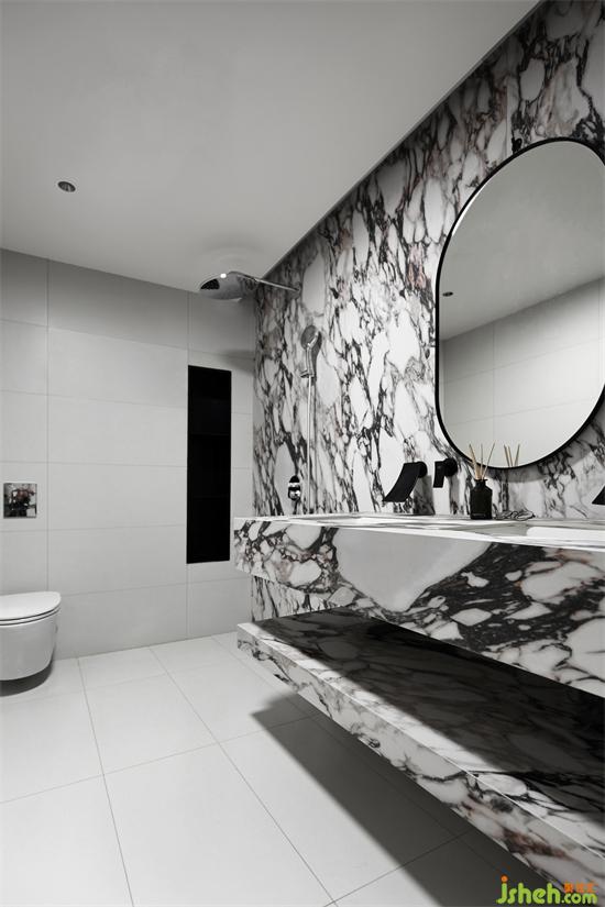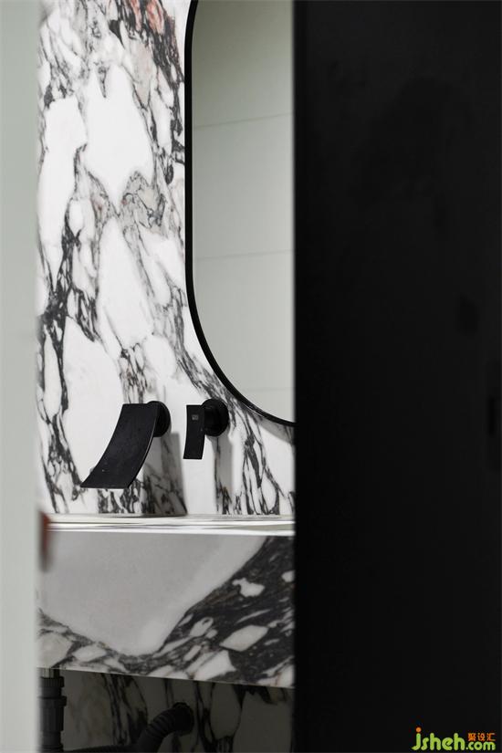 衛(wèi)生間干凈整潔,同時延續(xù)整個家中對于理石紋路磚的應用,中和了空間的單調(diào)與沉悶。成都風華苑復式裝修設計粗線條的紋路,將粗獷與優(yōu)雅相結(jié)合,充滿著動感的張力。