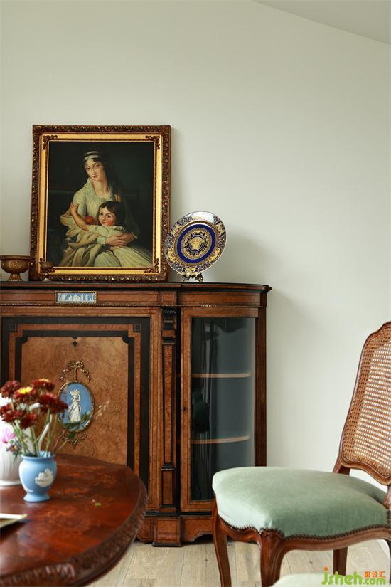 向花園過渡的二樓挑高區(qū)域,作為休閑區(qū)域,成都風華苑復式裝修設計將業(yè)主從國外淘回的古董家具做了組合,營造出濃濃英式下午茶的氛圍感。