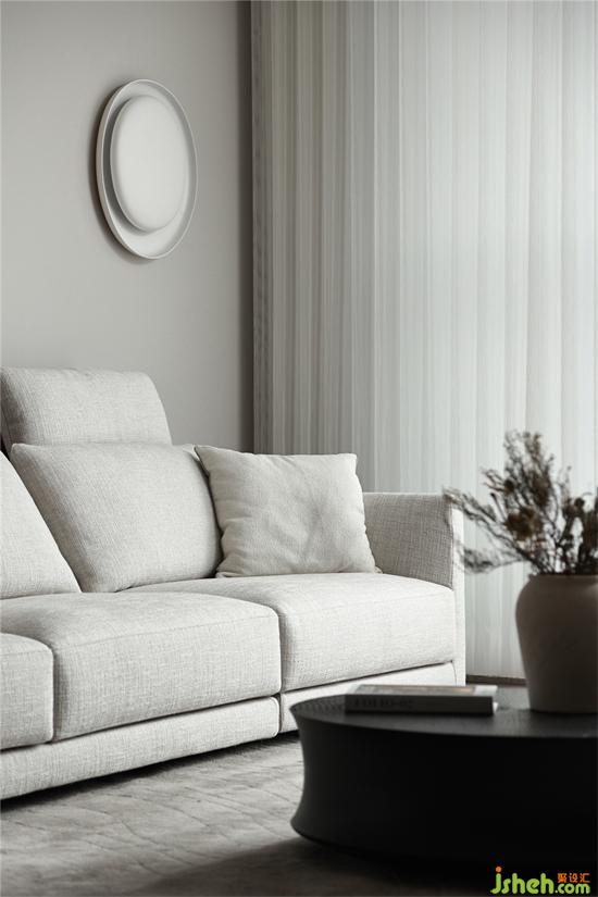 質(zhì)樸的瓶器為空間增加一種素雅之感,墻上的藝術(shù)雕塑裝置,也呼應(yīng)了空間的白色主調(diào),用造型的圓融來寓意生活的圓滿。
