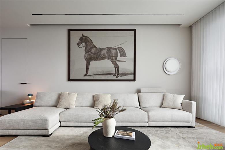 雅致的藝術(shù)掛畫同樣以白色做底,表現(xiàn)居住者品位愛好的同時,讓整個空間在視覺上擁有更加平衡的秩序感,使整個空間顯得干凈純粹、雅靜有加。