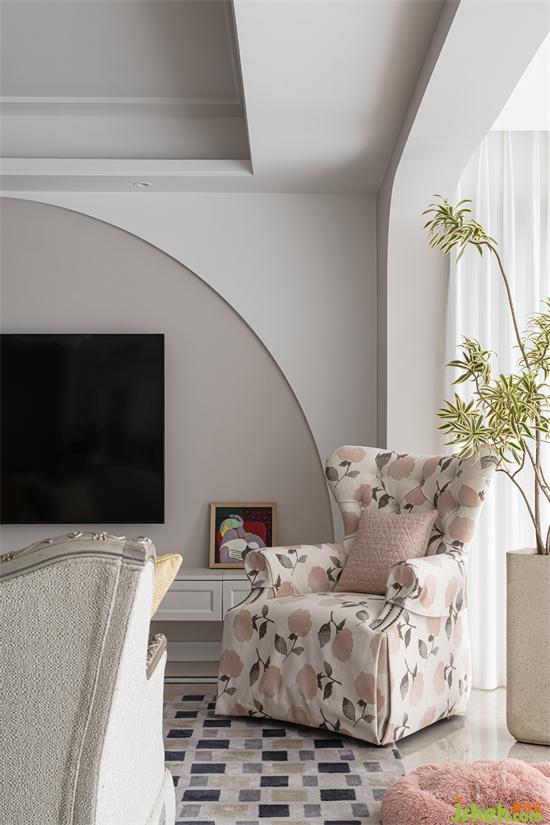 女業(yè)主十分愛花,室內(nèi)插花布置也都是自己一人完成。收納柜上的花枝橫斜溢出,充滿了春天的氣息,滿室盈芬,生機(jī)勃勃。