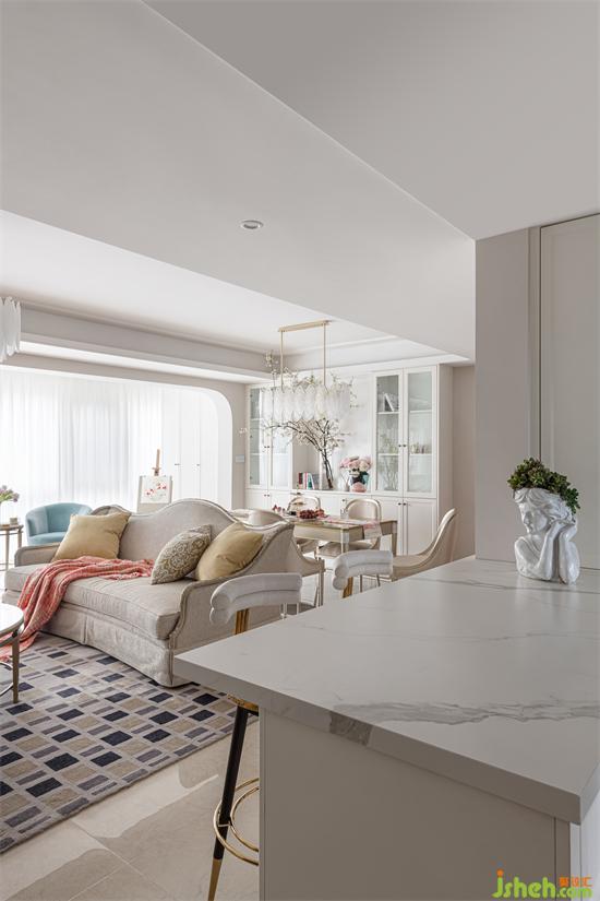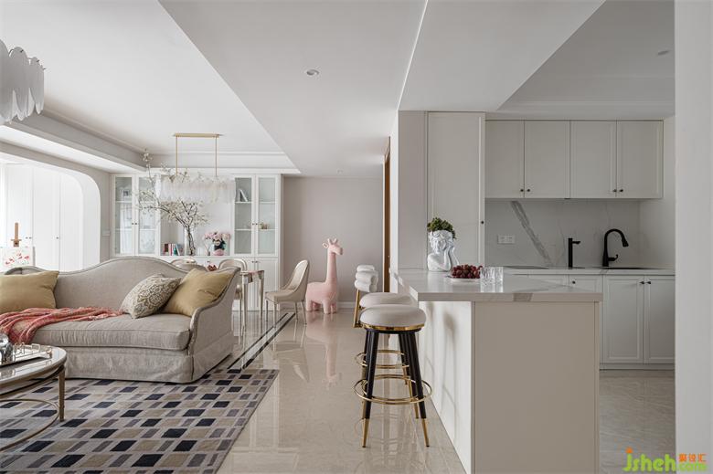 成都遠(yuǎn)洋萬和公館裝修設(shè)計(jì)師根據(jù)業(yè)主的日常所需,設(shè)置了一個(gè)十分便利的吧臺(tái),白色的臺(tái)面簡潔干凈,利落的線條極富理性。整個(gè)吧臺(tái)既是空間的中轉(zhuǎn)場,又是女主人獨(dú)酌或者與朋友暢飲的休閑放松場所。