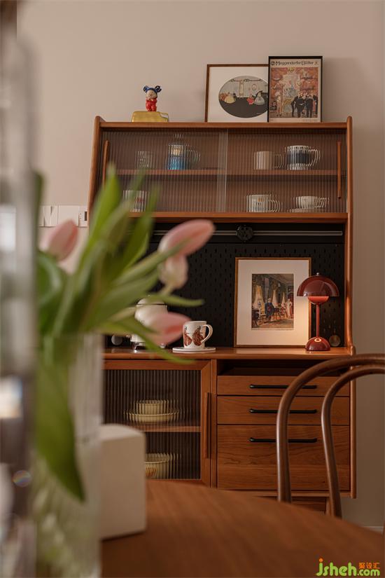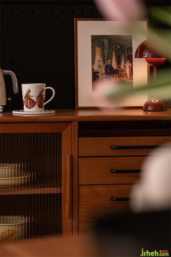 獨具復古情調(diào)的餐邊柜,工于細節(jié),不僅外觀雅致,更具備了強大的收納功能,成都家裝設計用來放置日常使用的茶具、杯盤、碗碟,再擺上幾幅格調(diào)清雅的畫作,文藝氣息撲面而來。