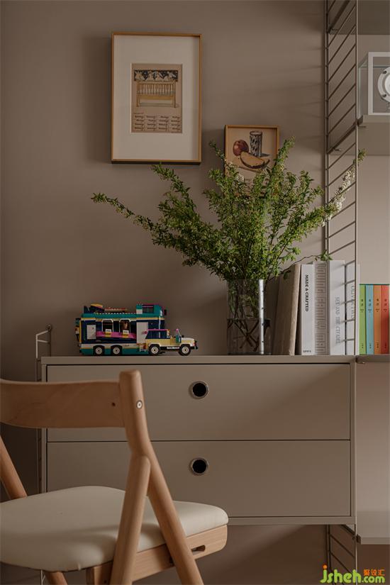陽臺區(qū)域一方面依靠綠植營造出自然清新的氣氛,一方面又充滿著可變性,作為兒童活動區(qū),預(yù)留了放置鋼琴的位置,成都家裝設(shè)計讓空間與人共生共長。