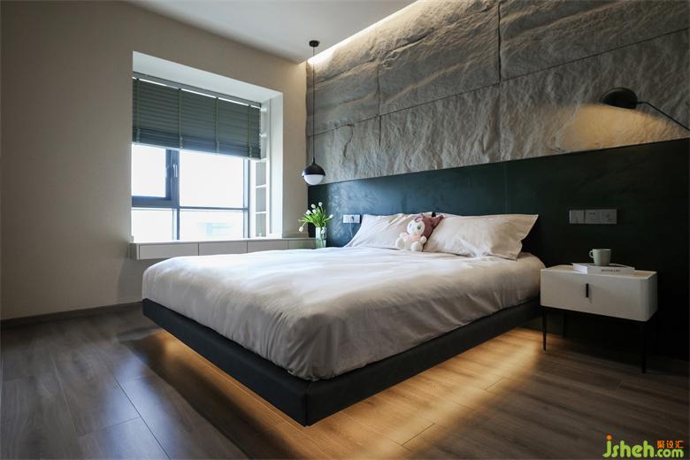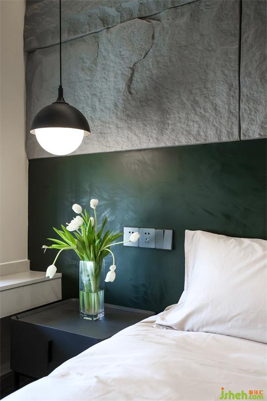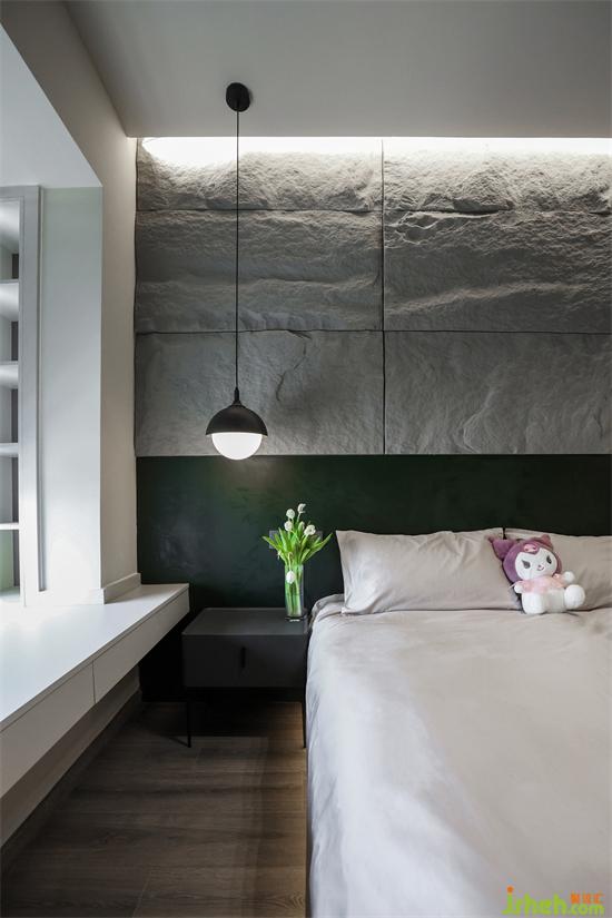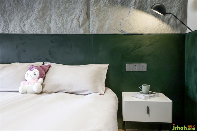 臥室擁有良好的通風(fēng)采光,背景墻有著自然巖石般的理性紋理,與墨綠色結(jié)合,成都北斗七星城裝修設(shè)計別具優(yōu)雅與硬朗氣質(zhì)。