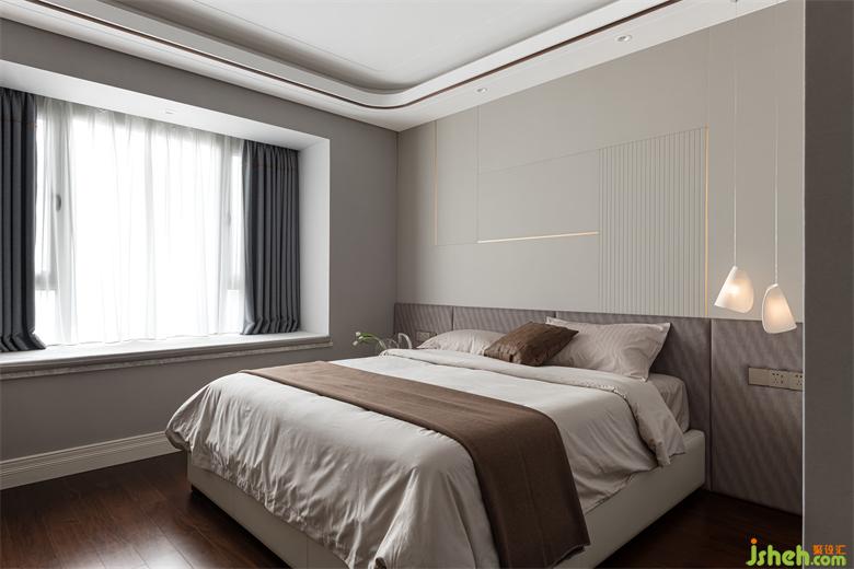 床頭垂下?lián)碛袦剀盎椟S燈光的吊燈,更增寧謐與溫暖的氣氛,成都中鐵御花府家裝設(shè)計讓人在睡眠與休息時可以盡享空間的浪漫暖意。