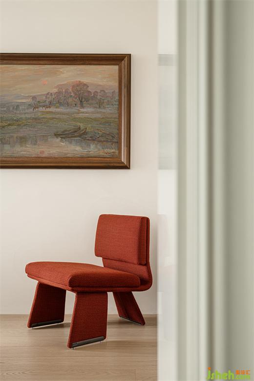 紅色單椅憑借獨(dú)特的姿態(tài),注入一抹亮色的同時(shí),讓整個(gè)空間變得更加和諧有致。
