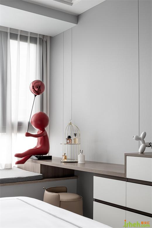 兒子房在極簡(jiǎn)的格調(diào)之下,又充滿著想象力與趣味性。內(nèi)斂穩(wěn)重的灰色,家裝設(shè)計(jì)打造出靜謐安然的休憩環(huán)境。俏皮的藝術(shù)掛畫(huà)與雕塑擺件讓整個(gè)空間都充盈著新鮮的活力。