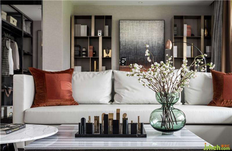 金屬與大理石是很好的藝術(shù)伙伴,它們總是能讓空間的品質(zhì)和價值提升一個層面。如果白色是主大調(diào),那么咖色就是小音階,金色勾略出白色的優(yōu)雅,宛如置身于維也納伴著華爾茲的步伐,優(yōu)雅迷人。樣板房設(shè)計