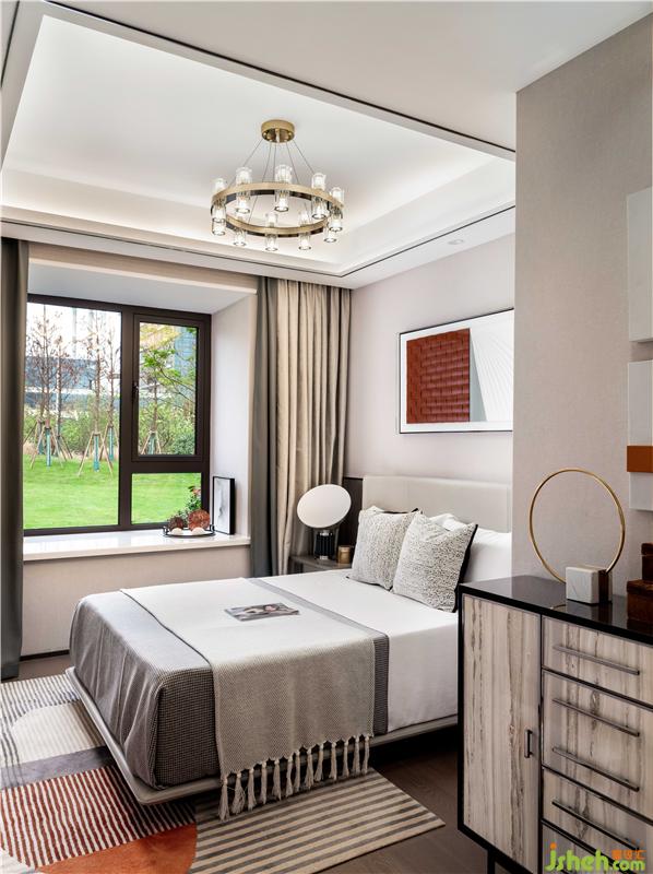 跳脫出整體優(yōu)雅的風(fēng)格,男孩房自然是靈動朝氣一些,藍白碰撞帶著時尚元素,大面積的窗讓光線隨意在房間有游走移動,讓空間無限生動了起來。樣板房設(shè)計
