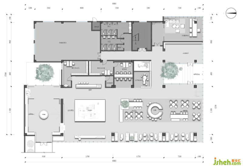 設(shè)計師希望通過有序的、內(nèi)涵的屋頂界定整個銷售空間,將其打造成為一個室內(nèi)外結(jié)合的有機整體。