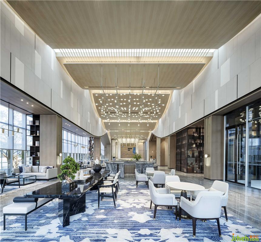 天然大理石、大面積木飾面及灰色石材,呈現(xiàn)質(zhì)樸典雅的黑白灰空間底色,幾組陣列燈飾如夜空里的繁星點(diǎn)點(diǎn),簡潔不刻意,妝點(diǎn)整體空間的和諧氛圍。