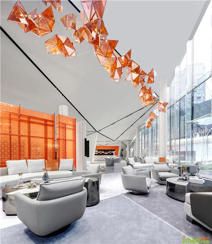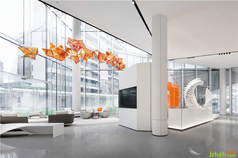 大面積玻璃幕墻構(gòu)建出通透的場域感,富于動態(tài)、整潔靈活的室內(nèi)造型語言,以及橙與白的色彩搭配,成為吸引人們視覺的焦點,傳遞出“萬家燈火”、“楓橋夜泊”的歸家意境。。裝修公司