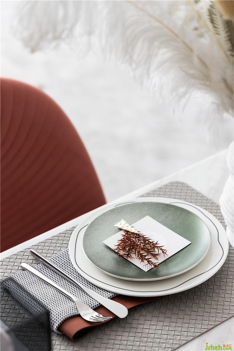 餐廳一抹溫暖的楓葉紅,營造溫馨舒服氛圍,宛如行走在秋天的森林中,樣板房設(shè)計又如三五親朋好友把酒言歡時,臉上微醺泛紅的快樂。