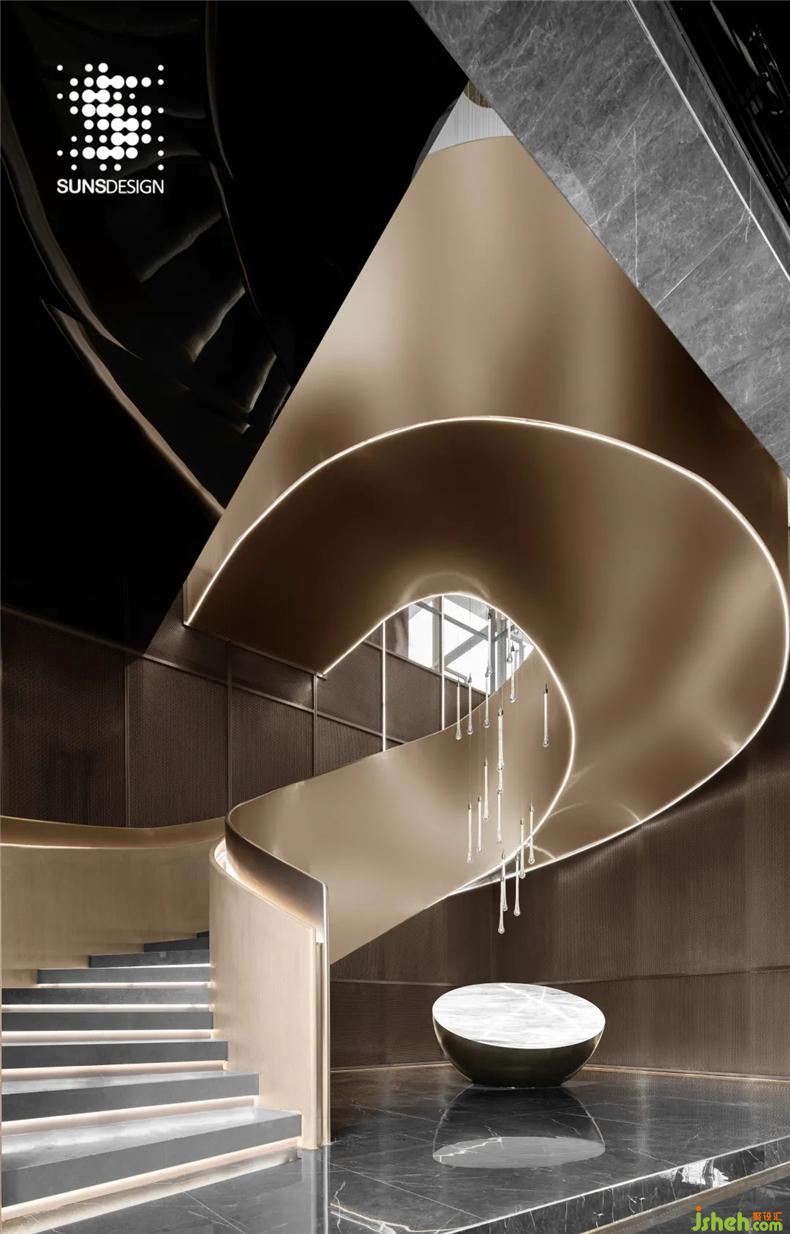一樓以酒店式大堂品質感服務后期社區(qū)的實際性入戶大堂,室內(nèi)設計師大堂利用建筑優(yōu)勢強化酒店式入戶體驗,以一種充滿儀式感的禮序歸家,體現(xiàn)尊貴奢華的品質生活。二樓在可控制的范圍內(nèi)作為小區(qū)的配套使用空間。以循環(huán)使用拉動空間與人的情感鏈接,期望能把這個時代人與人、人與城市、家庭與城市割裂的感情聚集起來,回歸每個人心中的溫暖棲居。