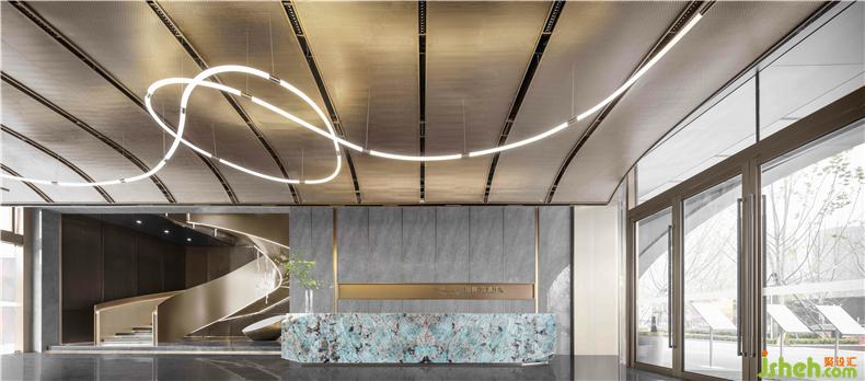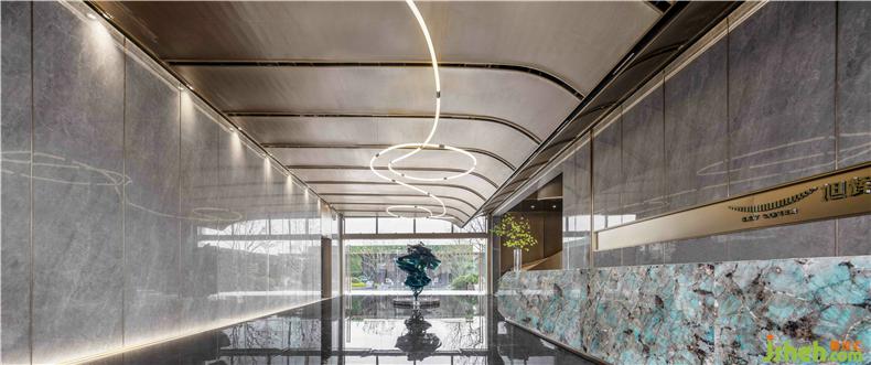 “微笑曲線”是貫穿整個空間的設計語言,是對空間深刻思考與解構后的轉化。門頭利用建筑弧線的溫柔性體現(xiàn)酒店歸家的儀式感,建筑量體半弧形的天花曲線匯整成和諧的拱形場域,室內(nèi)設計師透過大理石與金屬材質的散發(fā)著富麗堂皇的高雅,燈光的牽引伴隨著酒店式的奢華,一場讓人賓至如歸的視覺盛宴即刻開始。
