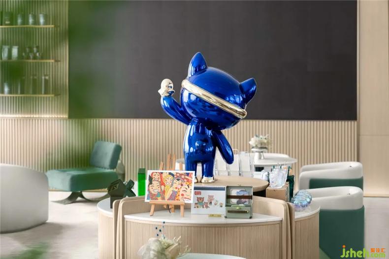 潮玩雕塑既代表了空間的現(xiàn)代調(diào)性與意趣,第一眼便吸引著行走者的目光聚焦,室內(nèi)設(shè)計(jì)師同時也兼具視覺上的指向性。實(shí)現(xiàn)豐富、飽滿而有情感與張力的空間體驗(yàn)。